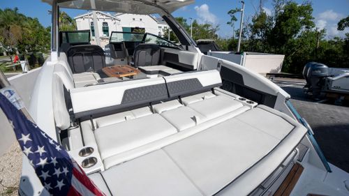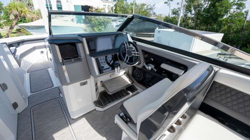 This is a rare opportunity to own one of the most sought-after luxury performance dayboats on the water today — the 2023 Cobalt R33OB, powered by twin Mercury 450R outboards with joystick control and only 145 hours of use. Still under factory engine warranty through April 2026, this boat has been professionally maintained and is in excellent condition.
