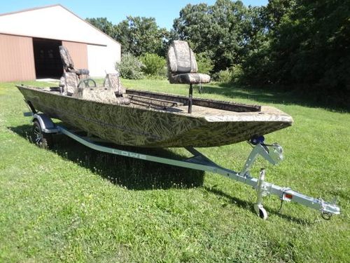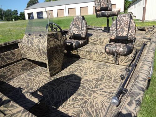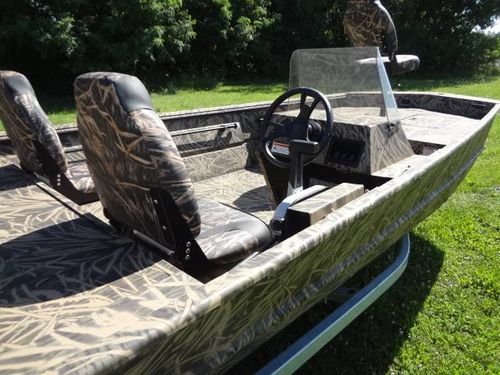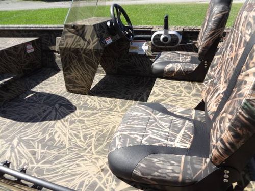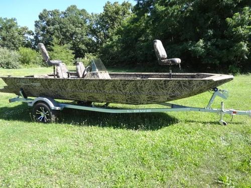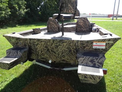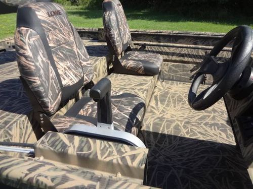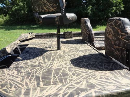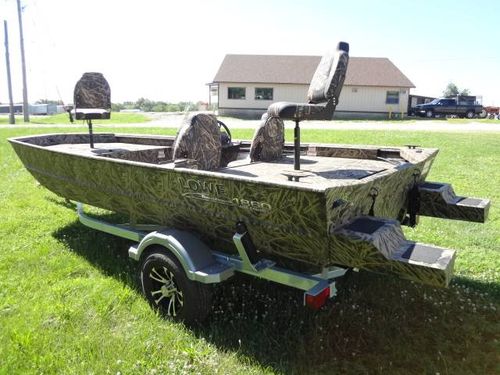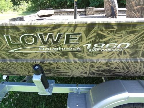 This is a new Lowe Roughneck RX1860SC all welded mod-V hunt and fish boat. Boat is 18’ long, 85” beam, 22” deep. Equipment includes Mossy Oak, Shadow Grass, camo finish, no-slip rough-liner interior, console windshield, 2) Shadow Grass pedestal fishing seats, 19 gal. built in fuel tank, 24 gal. aerated livewell, night time running lights and removable sponson pods on transom. The trailer is Karavan 1800# capacity, galvanized finish with aluminum custom wheels, folding tongue, radial tires, LED lights and side load guides. The boat has lifetime warranty on the hull and 10 years on interior parts. This outfit is new and has always been stored indoors. It is rigged and engine ready. You can buy it without engine or choose the engine size and we will install it. Contact us for options.