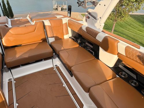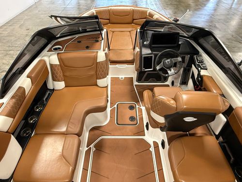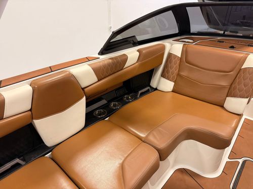 Built around Malibu’s proven hull and surf systems, the M220 produces clean, customizable waves and wakes for every skill level. The layout is thoughtfully designed with deep seating, premium materials, and an intuitive helm, making it equally suited for performance sessions and all-day cruising.