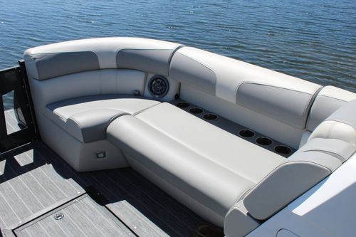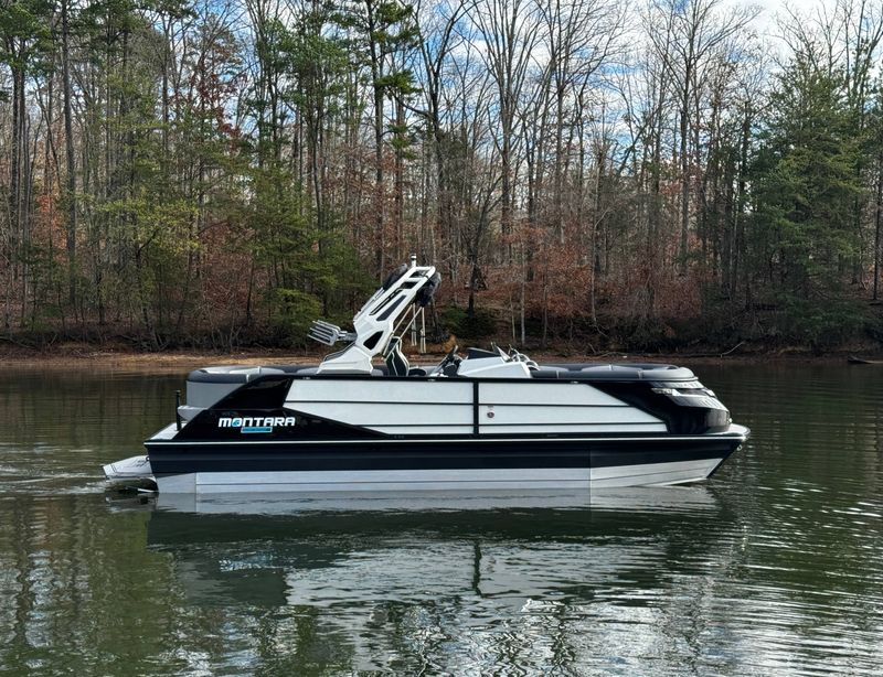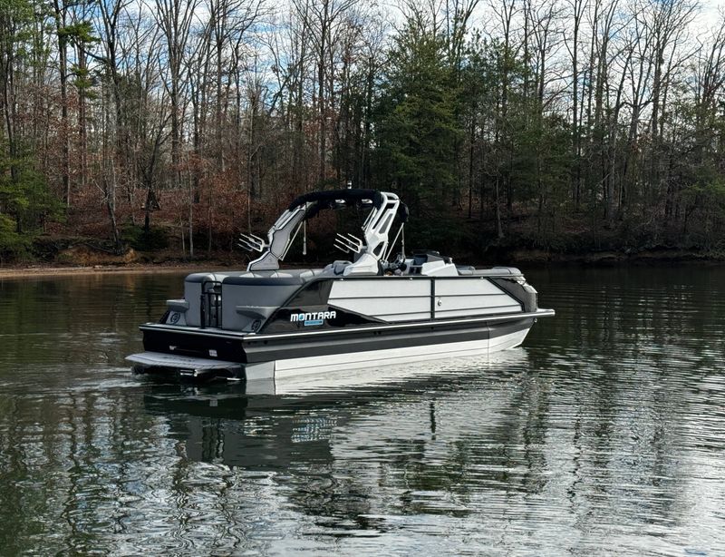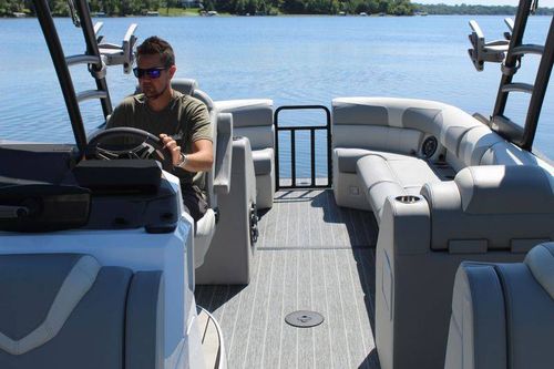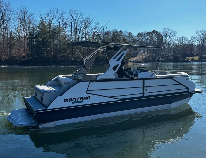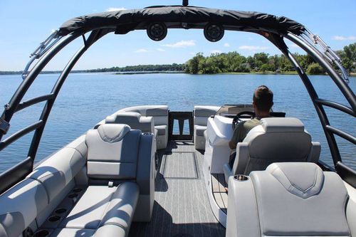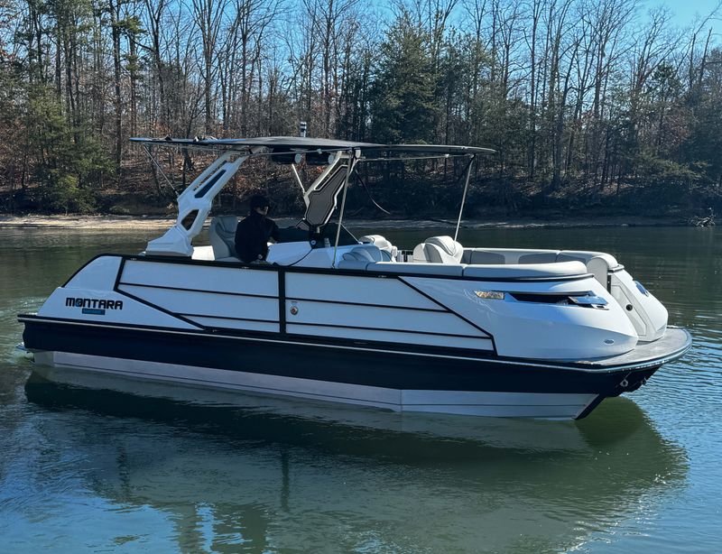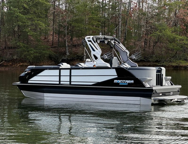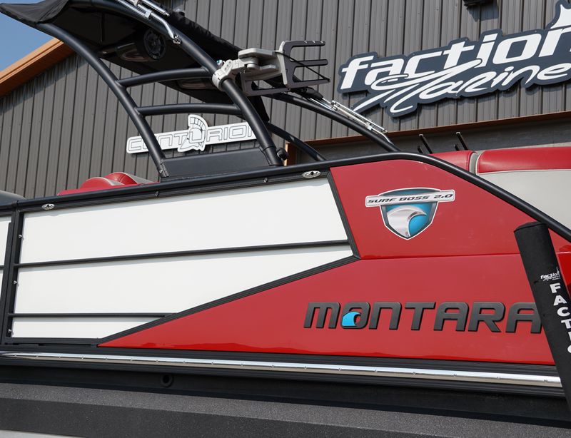 Montara Surf Boss 2.0 Description The Surf Boss does it all! Whether you and your family and friends enjoy lounging, cruising, surfing, swimming or hosting happy hour - the Surf Boss is for you. By fusing luxurious comfort of a pontoon with state of the art surf boat performance Montara has coalesced an industry first - pontoon boats that you can legally surf from. Fully loaded with features like huge ballast and fuel tanks, top of the line sound systems, bimini tops, and plush seating, the Surf Boss is designed for maximum capacity and performance in every aspect. SEATING With a sleek new design, the Surf Boss 2.0 brings forth a combination of ease of entry and comfort, as well as a top-deck layout designed with socializing in mind. POWERTRAIN The Surf Boss 2.0 offers three engine options