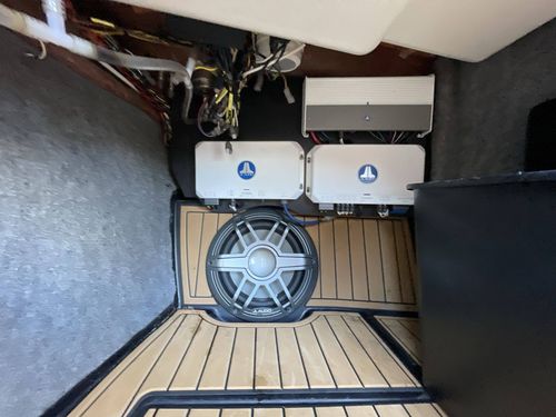 Relax in our premium reclining seats with soft bow armrests and cushion. Enhance your musical experience with our superior JL Audio M6 Series Studio Elite Stereo, featuring a wavefront design and a transom-mounted remote control.