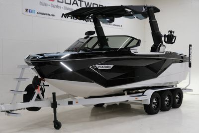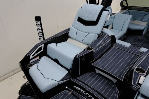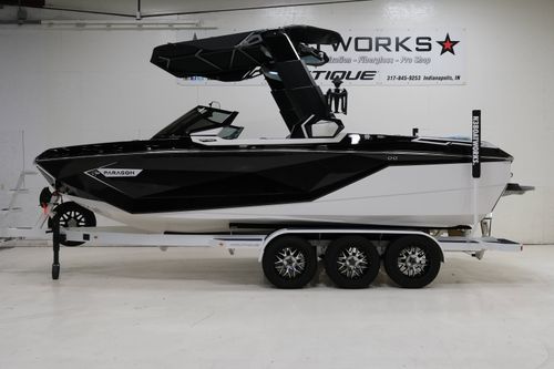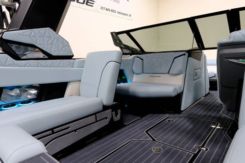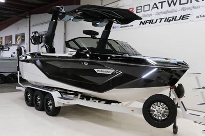 This 2022 Nautique G23 Paragon is a recent trade in and now available with just 185 hours on the ZZ8 600HP 6.2L Engine! This boat was originally custom ordered through our dealership and has been stored and maintained here since new. Upon arrival it received a full detail and service including fresh fluids, filters, and impeller to get it ready for next season. The exterior also received a polish and IGL Ceramic Coating touch up leaving the beautiful Jet Black gel coat with a glossy finish that will be easy to maintain. It includes factory warranty coverage through March of 2028 for added peace of mind!