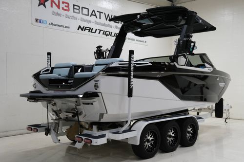 The boat is fully equipped with Nautique Integrated Steering Assist, Wake Subs, Telescoping Tower, ZZ8 Super Charged Engine, and even has a custom ordered Jet Black Interior Deck that was special ordered from the factory. The matching triple axle Boatmate Trailer completes the package. For a closer look at the features and condition, please watch our attached walk-through video.