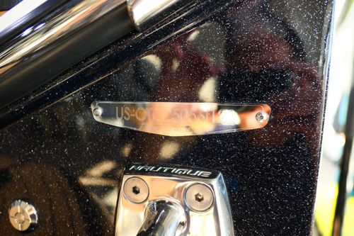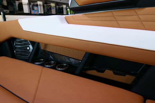 The boat also offers an exceptional sound system - JL Audio M6 Series Studio Elite (Wavefront) with a Stereo - Transom Mounted Remote Control. Walk-Thru Air-Dam