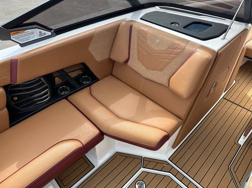 The all-new G23 takes on the asymmetrical design that Nautique has been on the forefront of and taken it one step further. Clear visibility of the water and the LINC Panoray touchscreen are evident, while keeping everything the driver needs within reach. A phone pocket doubles as a place to keep your drain plug when your boat is out of the water, and a large open dash area is the ideal place for hats and other accessories.