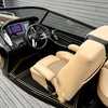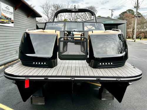 This is a premium offering in our lineup, a show-stopping masterpiece that effortlessly combines style, power, and performance in one sleek package. Crafted to perfection, our sexy black fiberglass triple pontoon is a head-turner on any water surface. It encapsulates an unapologetic bold personality that is sure to command attention from every direction.