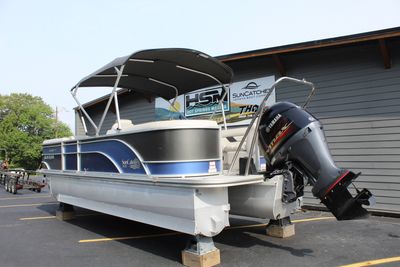 Seize the day and embark on an unforgettable adventure with our 22' triple pontoon boat. It's more than just a boat, it is an experience, a lifestyle, and an invitation to create timeless memories on the water.