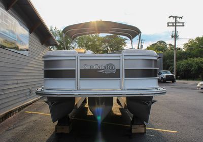 Seize the day and embark on an unforgettable adventure with our 22' triple pontoon boat. It's more than just a boat, it is an experience, a lifestyle, and an invitation to create timeless memories on the water.