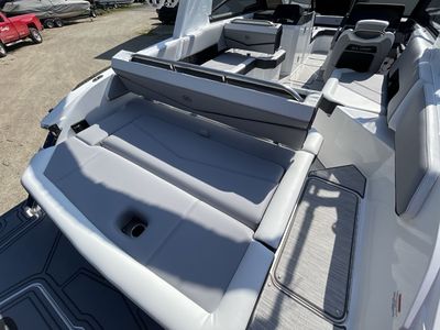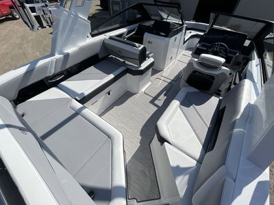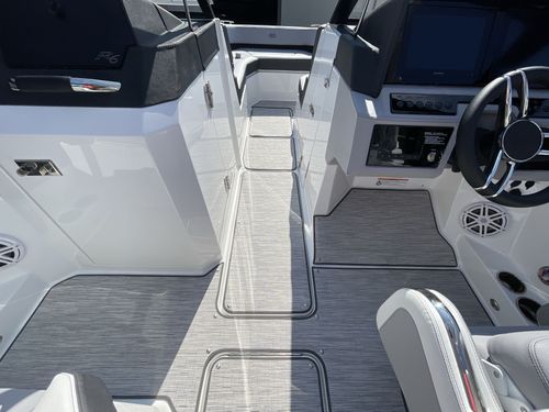 But the fun doesn't stop there. The R6 Surf also features a premium sound system with transom speakers, allowing you to enjoy your favorite music while out on the water. The trim tabs and windlass all chain anchor provide added safety and control.