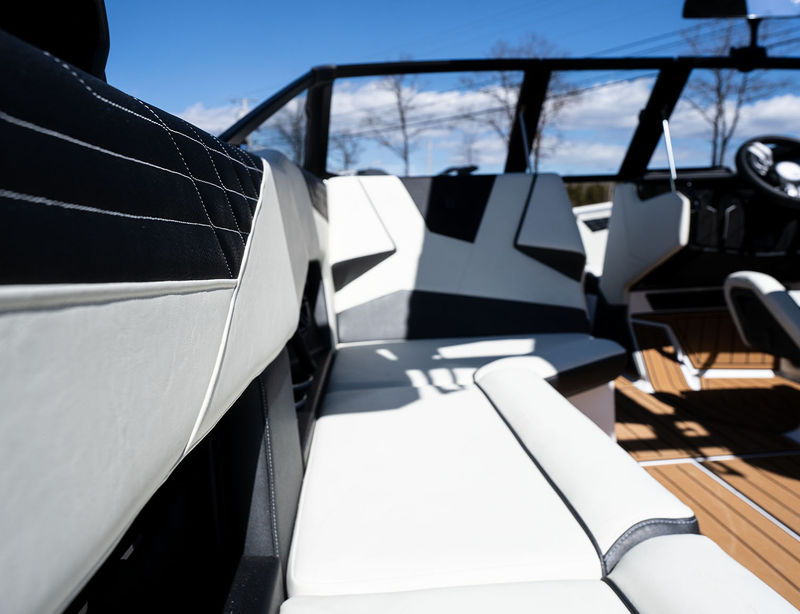 Built for riders who want maximum wave performance without sacrificing comfort, the 25’ WT-Surf delivers a big, clean surf wave thanks to Heyday’s signature hull design and integrated ballast system. Powered by a robust inboard engine, it offers plenty of horsepower for wakeboarding and wakesurfing while remaining smooth and stable for cruising. The spacious layout features wraparound seating, intuitive helm controls, and a premium sound system to keep the energy high all day long. With modern styling, innovative surf technology, and room for the whole crew, the WT-Surf is the ultimate blend of fun, function, and value on the water.