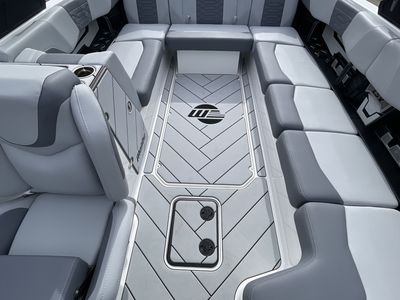 The sport dash with rotary joystick and wireless charging stations puts everything you need right at your fingertips, while the wideview backup camera makes maneuvering in and out of the dock a breeze. And when you're ready to hit the water, the flip down step swimboard and Soft-grip flooring ensure that you'll be comfortable and safe all day long.