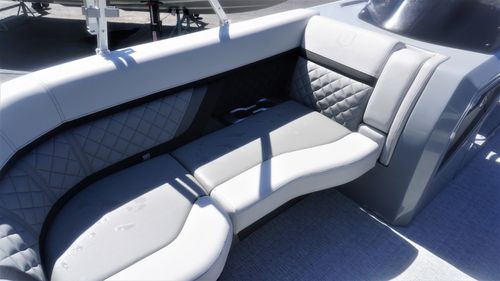 - Flooring Flooring Full - Vapor Blue Furniture Base Vinyl Color - Ultra Soft Lunar Gray Interior with contrasting accents, wrapped seat boxes