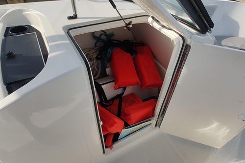 - Enclosed changing room with optional port potty provides convenience normally found on larger boats