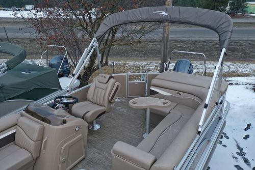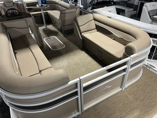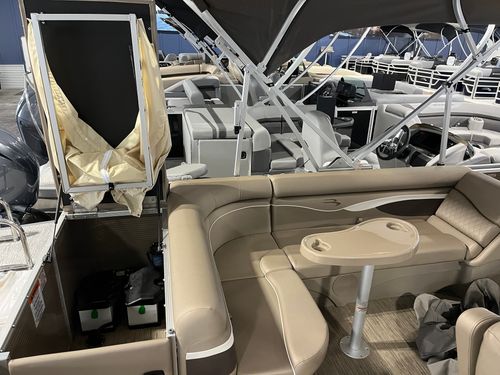 The 2023 Bennington 22 SL with a 150 Yamaha engine is a 22-foot pontoon boat built for both comfort and power. It seats up to 12 passengers with plush, spacious seating, perfect for family outings or relaxing on the water. Powered by a 150-horsepower Yamaha engine, it delivers strong, smooth performance, ideal for cruising or light water sports. Key features include a Bimini top for shade and ample storage, making it a versatile and enjoyable boat for any adventure.