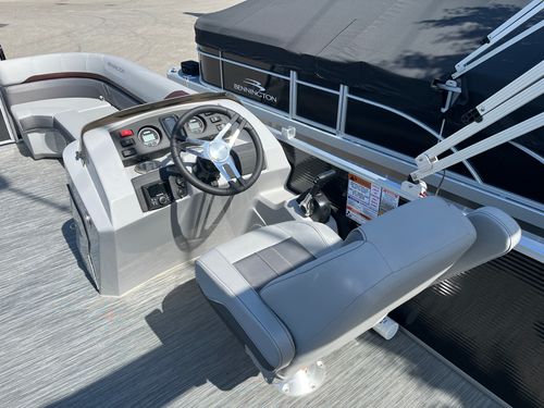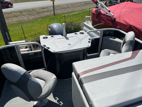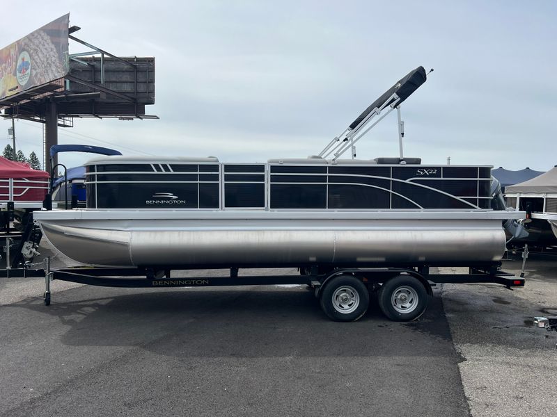 The 2023 Bennington 22 SXS APG is a 22-foot pontoon boat offering a great balance of comfort and performance. Seating up to 12 passengers, it provides a spacious layout perfect for family outings or leisurely cruises. Powered by a 115-horsepower Yamaha engine, it delivers smooth, reliable performance on the water.