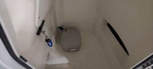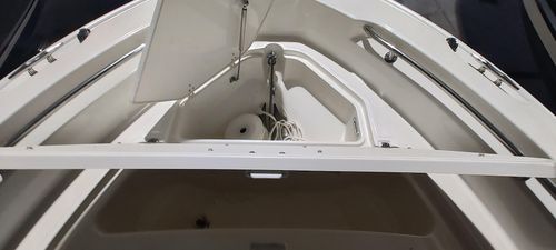 - Bow, anchor locker with overboard drain and stainless steel gas shock