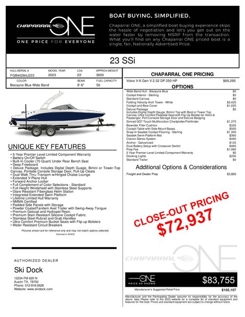 Nice! This Chaparral 23SSi is ready for a cruise! Featuring the Volvo Penta GenV 250HP V6. Features a