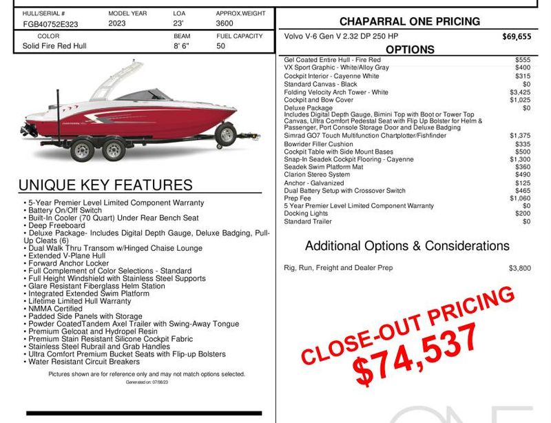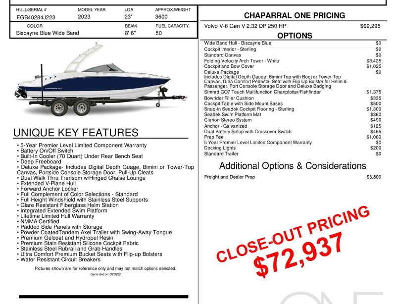 With just one season under its belt, this 2023 Chaparral 267 SSX offers a rare opportunity to own a nearly new luxury bowrider without the premium price tag. While gently used, it's been well cared for and shows only minor signs of normal wear—making it a smart move for buyers who want top-tier performance and styling without paying showroom rates. It's the kind of boat that delivers both confidence and excitement the moment you step aboard.