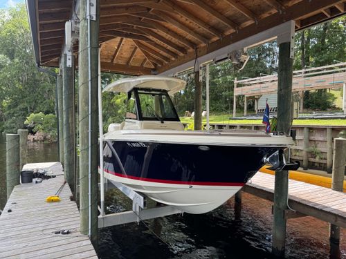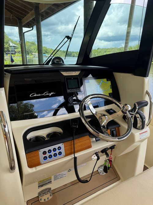 This Chris-Craft Catalina 24 is freshwater kept and has low hours. One of the few outfitted with a 350 Mercury Verado allows for more top end speed and better overall performance. Loaded with options this is the perfect river runner for anyone that wants to do it in style. wit hseating for 10, and a head for those longer trips, this is a great center console for the whole family.
