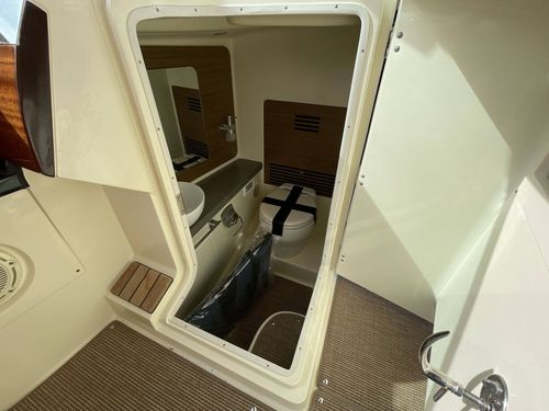 The interior is where luxury meets comfort. With toffee cockpit vinyl base and insert, navy vinyl accents, walnut interior wood, and navy color contrast stitching, the Launch 31GT offers a welcoming and sophisticated cabin space.