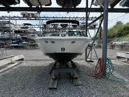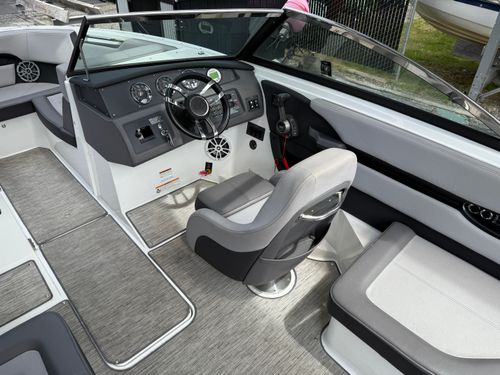 The 2023 Cobalt CS23 Surf is a premium 23-foot surf boat that combines sleek design with powerful performance, making it ideal for wake surfing, water sports, and family cruising. Built on Cobalt’s deep-V hull and equipped with Volvo Penta Forward Drive, it offers smooth handling, quick planing, and customizable surf waves through the TrueWave Surf System. With seating for up to 12 and features like Fresco Chil upholstery, a folding arch with Bimini top, and it delivers both comfort and convenience. The CS23 Surf also includes over 1,400 lbs of ballast, and a user-friendly helm, making it a versatile and stylish option for those seeking a high-performance, luxury sport boat.