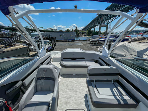 Experience the thrill of the 2023 23' Cobalt CS23 Surf, a new boat crafted for water enthusiasts. Its elegant Frost/Navy exterior and Frost/Slate interior encapsulate luxury, while the Volvo V8-300CE-G DP engine ensures powerful performance. With its inboard/outboard drive, this surf boat delivers exceptional handling. Accommodating up to 12 passengers, it's perfect for unforgettable adventures, standing out in boat sales for its style and versatility on the water. Call or visit Seattle Boat Company in Seattle, Bellevue, or Lake Tapps to meet our award-winning team for certified service, new and used boat sales, financing options, and more.