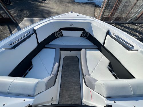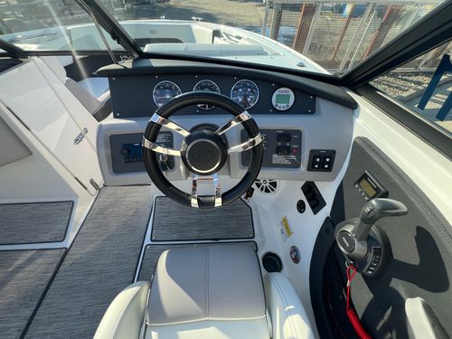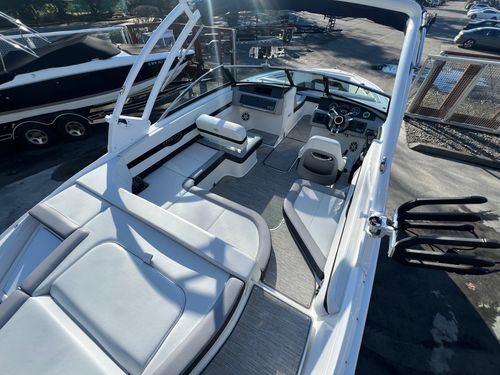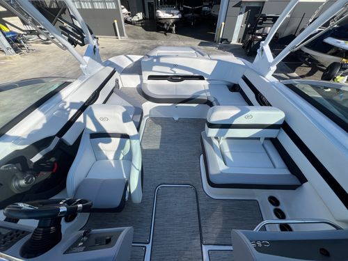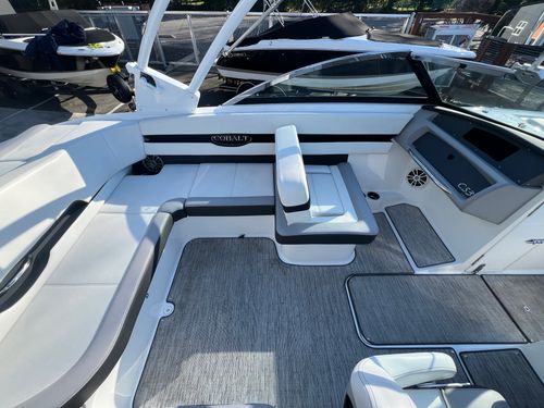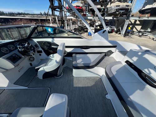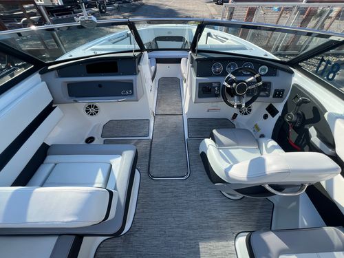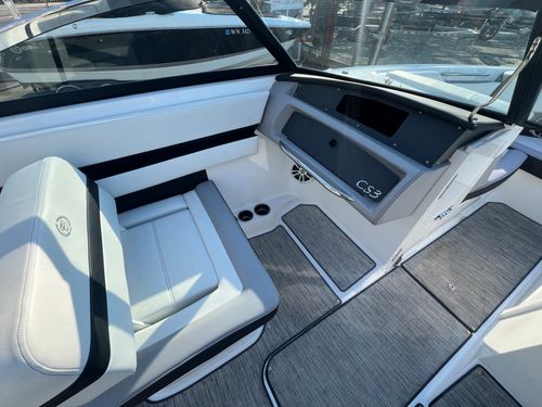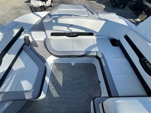 The 2023 Cobalt CS23 Surf is a premium 23-foot surf boat designed for both performance and comfort, making it ideal for watersports enthusiasts and families alike. Powered by the Volvo Penta Forward Drive system, it delivers smooth handling and powerful wakes, while the TrueWave surf system makes wave customization effortless. Inside, the CS23 Surf features spacious seating for up to 12 passengers, high-end Varadense Comfort upholstery, and a sleek, modern design that includes a walk-thru transom and cooling Fresco Chil vinyl for added comfort. With a ballast capacity of 1,433 lbs, it combines top-tier surf capability with luxury details, offering an exceptional all-around boating experience.