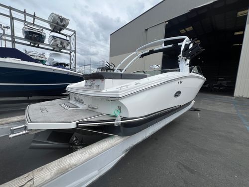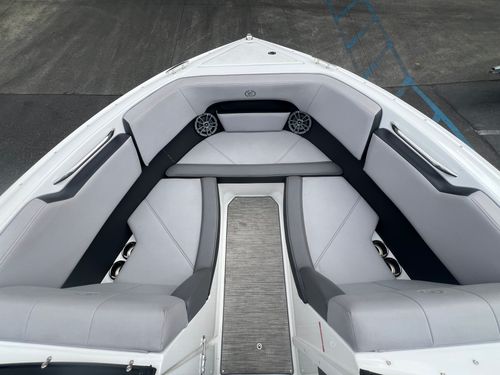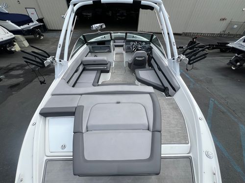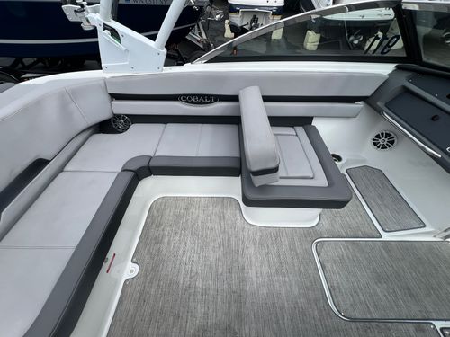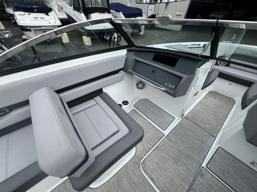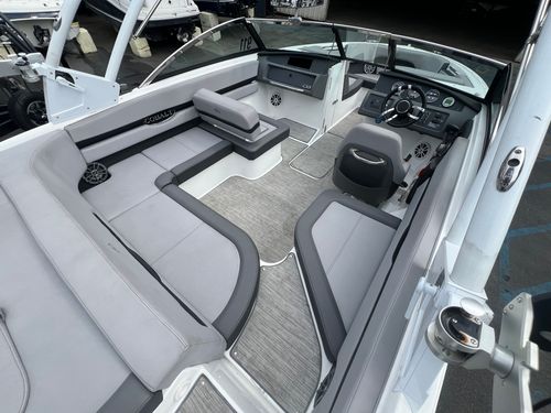 The 2023 Cobalt CS23 Surf is a premium 23-foot surf boat that combines sleek design with powerful performance, making it ideal for wake surfing, water sports, and family cruising. Built on Cobalt’s deep-V hull and equipped with Volvo Penta Forward Drive, it offers smooth handling, quick planing, and customizable surf waves through the TrueWave Surf System. With seating for up to 12 and features like Fresco Chil upholstery, a folding arch with Bimini top, and it delivers both comfort and convenience. The CS23 Surf also includes over 1,400 lbs of ballast, and a user-friendly helm, making it a versatile and stylish option for those seeking a high-performance, luxury sport boat.