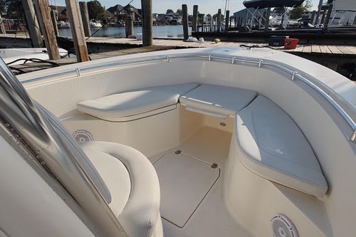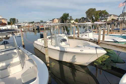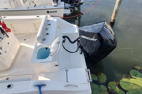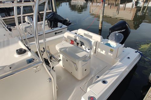 The 2023 Cobia 237CC is a versatile and stylish center console boat designed for both serious anglers and family outings. Measuring 23 feet 7 inches in length with an 8-foot 6-inch beam, it offers a spacious layout and smooth ride, powered by a robust Mercury 250XXL outboard engine. Built from durable fiberglass, it features premium fishing amenities like a 30-gallon livewell, insulated fish boxes, and ample rod storage, alongside comfort touches such as bow cushions, a folding aft seat, and a roomy helm station. With advanced electronics, a self-bailing cockpit, and seating for up to 10, the 237CC blends performance, convenience, and craftsmanship for memorable days on the water.
