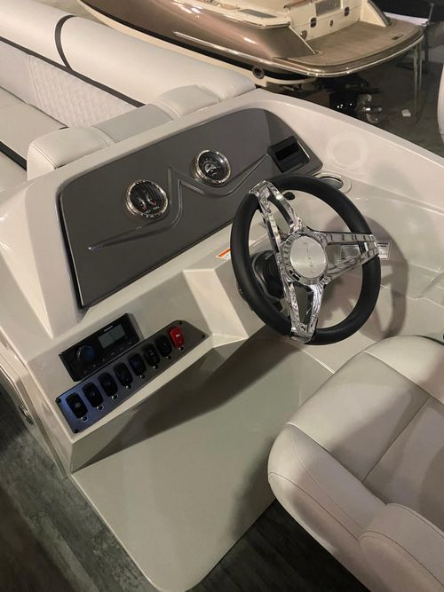 With deluxe features and upgrades, the SLC Classic DLX has what you need for all-day adventures or simply enjoying the moment. Enjoy the soft, insulated cooler located in the bow cooler drawer that can be loaded on and off the boat to pack your favorite snacks and drinks. Keep the party going and never run out of battery with a wireless charging station at the helm. The wrap around design along with helm trims on our Classic DLX will have you cruising in style. Cruise, sit back and crank the music - we’ll handle the rest.