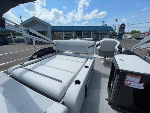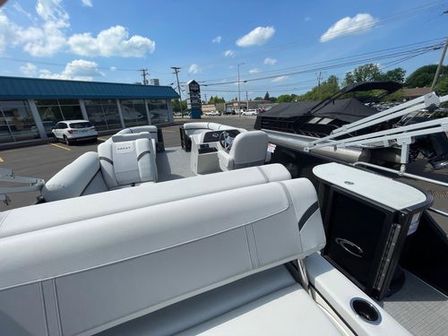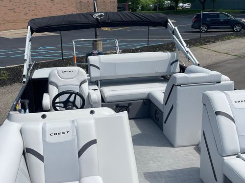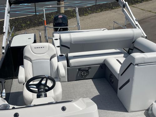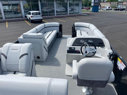 The 2023 Crest Marine 240SLS Classic LX is a luxurious and stylish pontoon boat that combines comfort, performance, and elegance. It’s part of Crest’s best-value pontoon lineup. Features include USB phone chargers throughout, and a variety of floor plans with L-shaped sun pads, swing back loungers and plenty of storage. Powered with a Mercury 150HP Pro XS, this Tri-toon is built for peak performance. Whether you’re fishing, swimming, or simply enjoying the water, the 240 Classic LX has you covered.