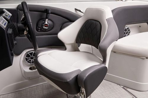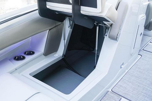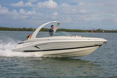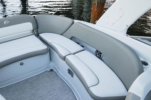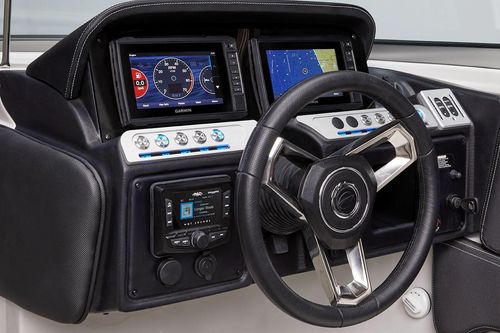 Feature-packed and ready for action, the 280 SS comes standard with an electric Moonstone arch, windlass, underwater lighting, and stainless steel docking lights. This model is designed with conversation-friendly J-wrap cockpit seating and additional two-passenger seating behind the driver seat. This seating area can be exchanged for an optional cockpit galley with a stainless steel sink and faucet, solid surface top, and finished storage area, cockpit refrigerator or cockpit grill.