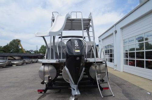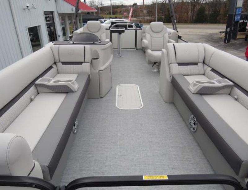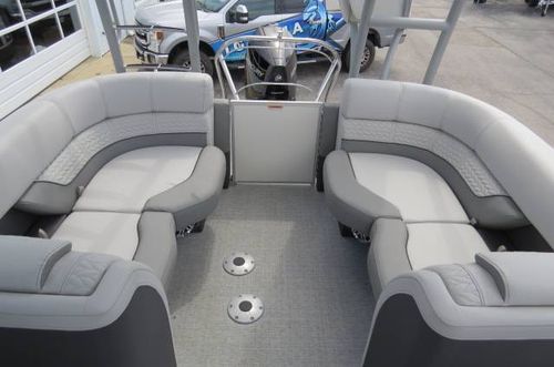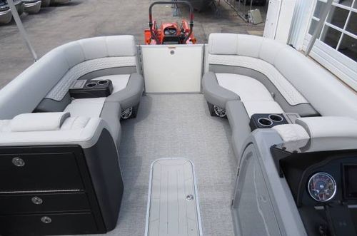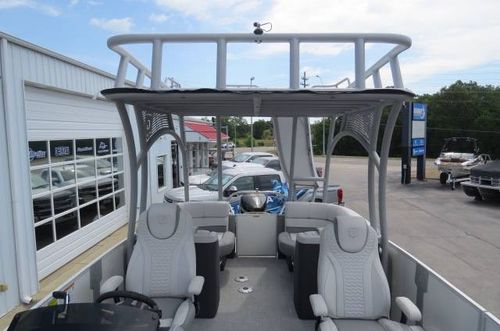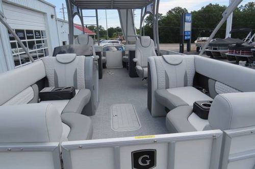 This Godfrey Tritoon is available for sale at our Lake of the Ozarks location. We also have locations in St. Louis MO, Oklahoma on Grand Lake, and Lake Texoma in TX. Our skilled team is ready and willing to assist with any of your boating needs. Sales and service at all locations.