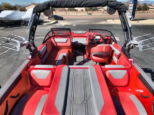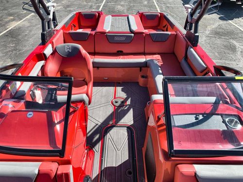 This unique boat comes packed with features like an integrated stereo system for an immersive audio experience, backlit toggle switches for ease of navigation, and built-in coolers for storing your favorite beverages. Additionally, the boat includes a rear-facing camera to aid in towing and docking maneuvers and adjustable ballast system to customize the boat's wake.