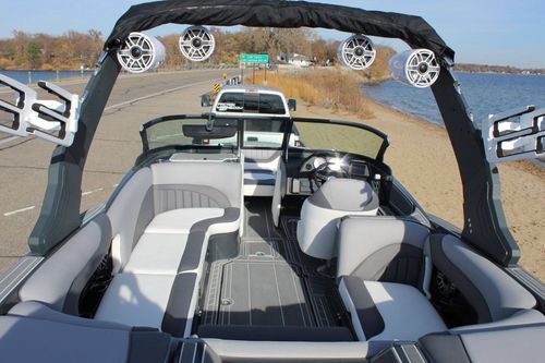 - Surf Pipe- Plug-n-Play Ballast- Surf System- Power Tower- Raptor 400- RGB Theatre Lighting- 5.5” Screen- Swimstep Ladder- Clamping Surf Racks- Package B Audio | 4 JL Audio 8.8 M6 Tower Speakers- JL Audio 8.8” Cockpit Speakers- 12” Subwoofer w/1000watt Amp- Any Gatorstep Configuration (2-layer)- Gatorstep Under Storage (Alpha only)- All Powdercoat Options- Fender Clips- Additional Pair Cleats- Transom Remote- Shipping Cover & Prep *Some configuration restrictions may apply
