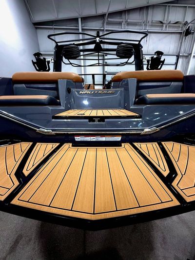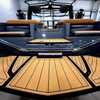 The G21 also features a beautiful Nauteak Non-Skid covered rear walk-through area for secure navigation between the lounge and swim platform areas. This passage, covered in a non-skid material, ensures secure foothold, facilitating ease of movement and top-notch safety, reaffirming the G21 as an ideal family boat.