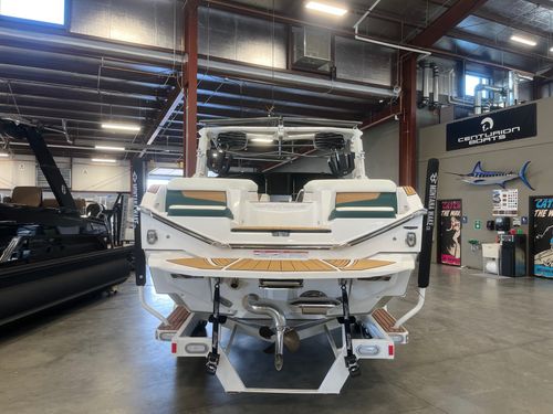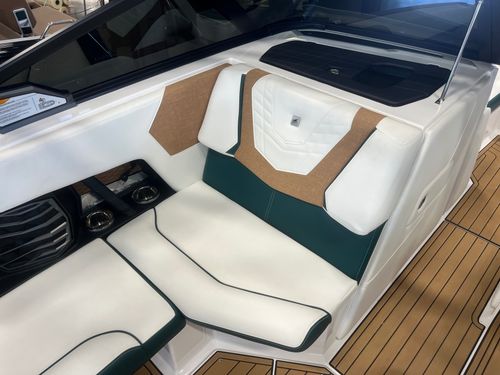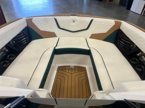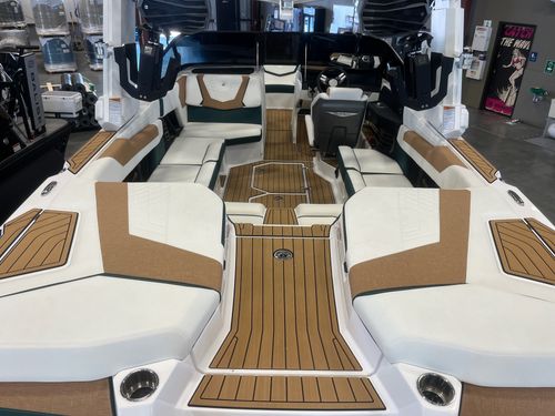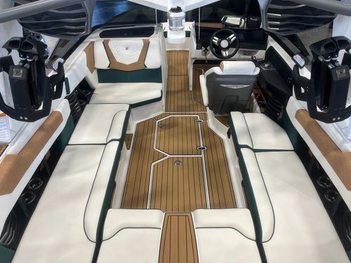Inside, you’ll find luxury and innovation at every turn—JL Audio M6 premium sound system, Gorilla Mat flooring, a spacious convertible stern seat, helm command center with LINC Panoray touchscreen, and ultra-refined fit and finish throughout. Seating for 16 ensures there’s room for everyone to ride in style and comfort.