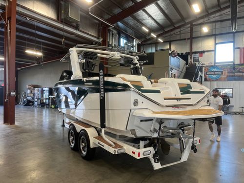 Powered by a PCM ZZ6 6.2L direct-injection engine, this 23-foot masterpiece features the latest in hull and ballast technology, including Nautique’s renowned NCRS system and up to 2,250 pounds of subfloor ballast. The result? Perfectly shaped, customizable wakes for every level of rider.