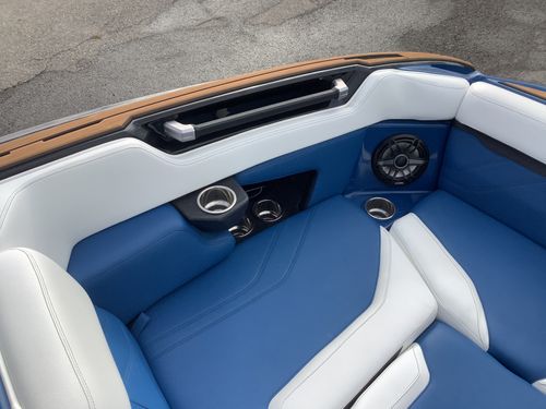 The 2023 Supra SE 550 is a high-performance wake boat engineered for serious water sports enthusiasts. At 24.5 feet in length, the SE 550 offers a spacious, premium interior with seating for up to 18 passengers. Powered by the formidable 6.2L Roushcharged Raptor engine, it delivers unmatched power and precision on the water. The Supra AutoWake system and Swell Surf 3.0 technology allow for perfectly customized wakes and waves for wakeboarding and surfing. With cutting-edge features, luxurious comfort, and bold design, the 2023 Supra SE 550 sets a new standard in performance and style.
