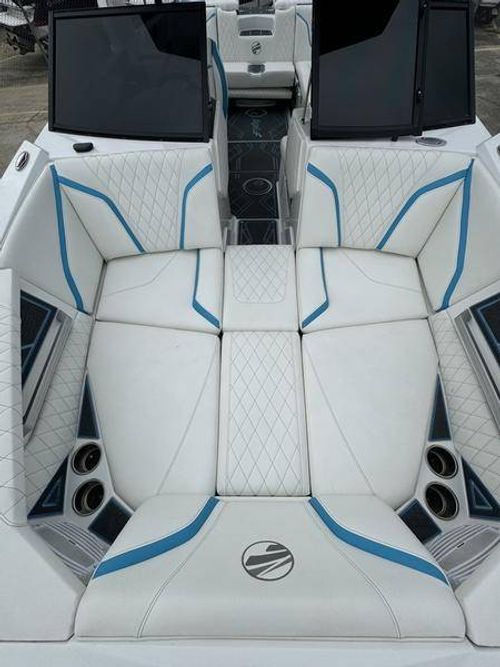 Expand your expectations with the 24RZX. Exuding confidence, its razor edge design is complemented by its distinct lines and lush diamond stitching. With a culmination of our latest advancements, the 24RZX goes big, not just in size but in performance, versatility, luxury, storage, and freeboard. If you crave power, state-of-the-art technology, and want to stand out - the 24RZX is the boat for you.
