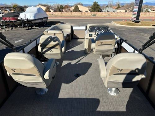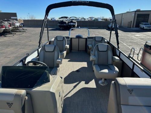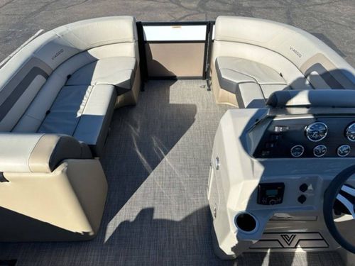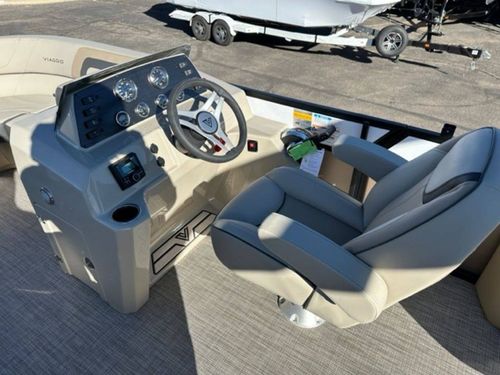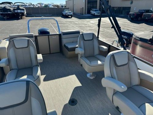 - Exclusive Matte Metallic FencingSingle Colored .040 Metal Fencing on Exterior of the railEnhanced Full C-Channel Cross MembersUSCG Chrome, In-Rail Navigation lightsRail caps around all door openings for seamless designSpeedo (pitot), Tac, Volt, Fuel GaugesFull Fiberglass Lago Helm w/ WindscreenGussi Molinara 13.75” Black with Brushed Aluminum Steering wheelRockford Fosgate PMX-1 Receiver with 2.3” DisplayLCI Premium FurnitureKnuckle Hinges on Flip-up Seat CushionsBlack cover and biminiFloatable Round TableMid-Contour, Recliner Captain Chair w/ Swivel & Slider