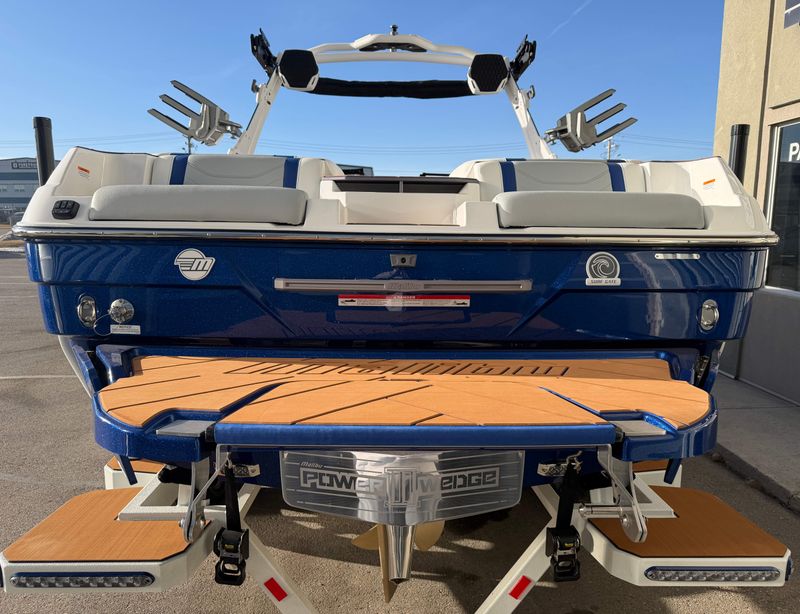 Experience the ultimate surf and wakeboarding session with the Malibu 22 LSV's state-of-the-art features. The exhaust surf pipe and HI FLO Ballast system ensure massive waves for endless fun on the water. Thanks to the surf gate with surf band, you can effortlessly switch between regular and goofy surfing styles, catering to every rider's preference. Boost your performance even further with the power wedge III, allowing you to fine-tune the wake to perfection.