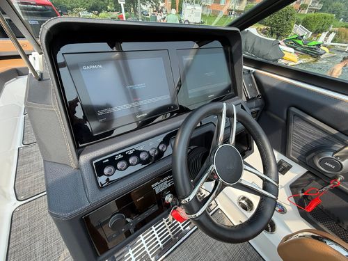 Navigate with confidence using the dual Garmin glass cockpit screens, providing you with real-time information and navigation assistance. The LED interior accent lighting creates an inviting atmosphere as day transitions to night, seamlessly blending modern technology with classic elegance. With trim tabs and indicators, you have full control over your ride's dynamics, ensuring a smooth and comfortable journey.