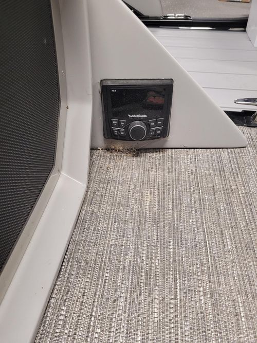 - Fiberglass Fastback Aft with Rear Facing Speakers, aft stereo remote and Stainless Steel Gate