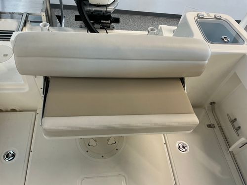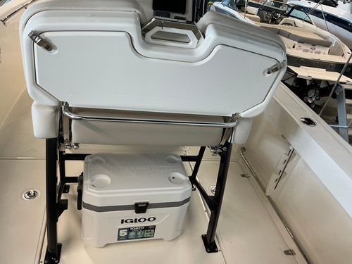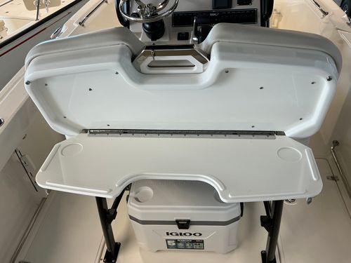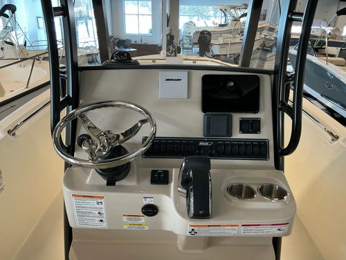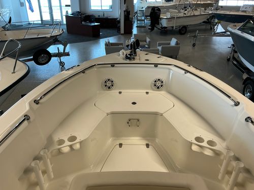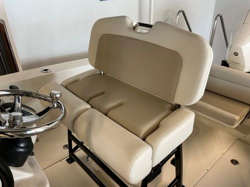 The 230 Outrage by Boston Whaler can take you from the bay past the breakers to target the species of your choice. Integrated Simrad® technology at the helm keeps you in control of all navigation and internal functions, and a carefully designed interior layout makes this the most fishable boat in its class. A convertible leaning post conceals a handy work station and extra aft-facing seating, and storage throughout this 23-ft. center console boat provides room for everything your adventure requires.