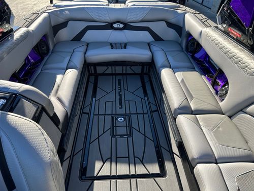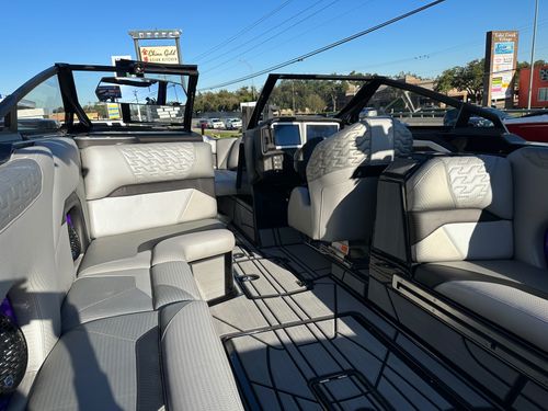 This Ri245 comes equipped with the PCM 6.2L ZZ6 450, Centurion QuickSurf w/QuickLaunch, RAMFILL ballast w/ additional Plug & Play, Cobra Race Inspired Captain Seat, RGBW Lighting Control, Zero Off Cruise, ROV Camera, Removable Cooler, Ski Pylon, Dropzone Tower w/Bombshell 2.0 Board Racks & Sewlong Bimini, Wetsounds Hero System, Underwater Lights, Wetsounds Warrior package, Cover, Trailer included. Inquire Today!