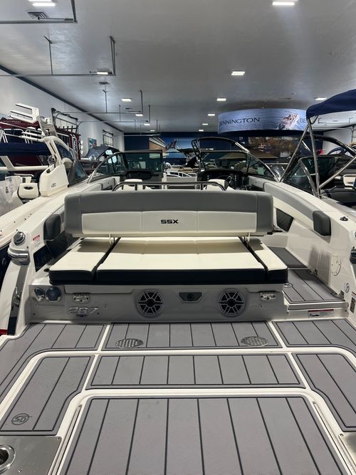 The 267 SSX is breaking barriers and setting the standard in quality. Equipped with state-of-the-art dual multifunction 7" displays within the easily accessible helm for improved ergonomic navigation. Sporting a spacious cockpit with standard u-shaped aft seating to provide an open concept that is perfect for entertaining. The 267 SSX was designed to captivate with no compromise to power or performance. The 267 SSX comes standard with ultra comfort bucket seats lined with hand stitched vinyl both port and starboard. Comfort and Quality are essential when it comes to an unforgettable boating experience and the 267 SSX delivers.