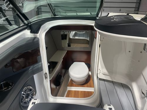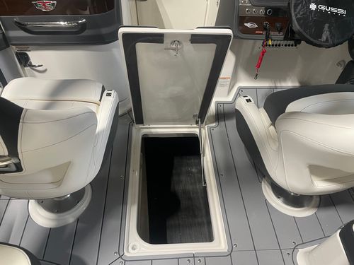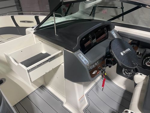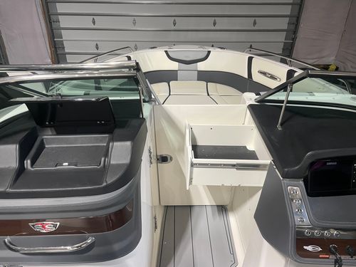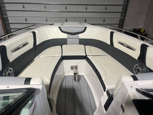 Meet the 287 SSX, with an overall length of 28', this vessel is rapidly becoming a trendsetter within the boating world. The standard Infinity Power Step swim platform makes watersports setup a breeze. Sporting an open and spacious cockpit design outfitted with hinged storage and hand-stitched vinyl seating along with dual 7" touch screen displays embedded in the helm, the 287 SSX is here to make a statement in luxury boating.