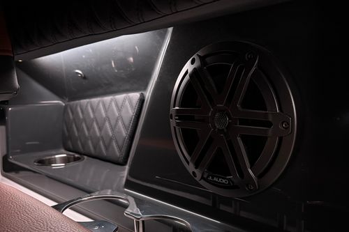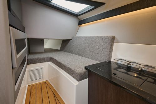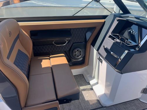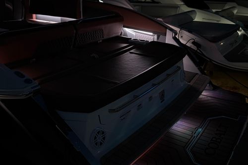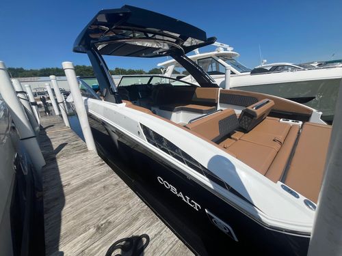 The Cobalt R33 combines classic styling with innovative geometry, giving it a commanding presence on the water. Stainless steel accents add elegance, and the hydraulic swim platform with a patented mechanical Swim Step offers effortless access to the water. Inside, you’ll find finely tailored upholstery, modern amenities, and an ergonomic helm with dual Garmin Glass Cockpit touchscreens. Whether staying in the bay or running several miles offshore, make the Cobalt R33 a part of your journeys all summer long.