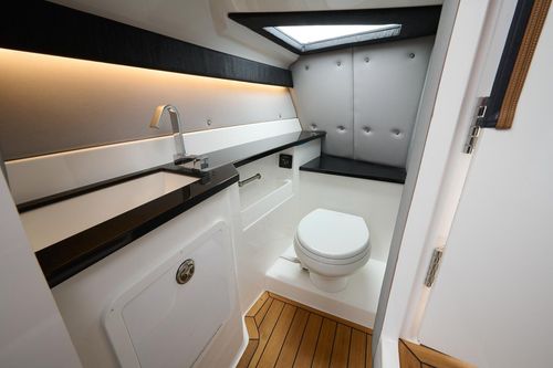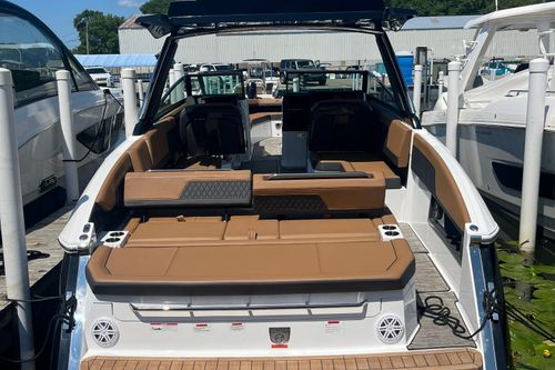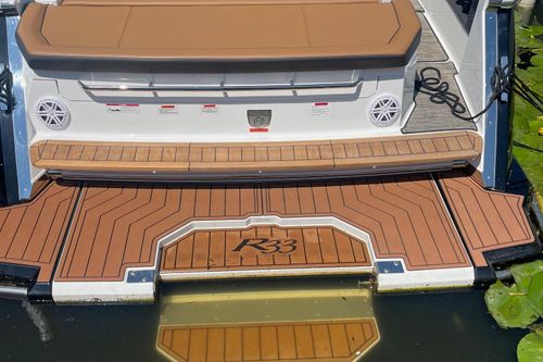 Manufacturer Provided DescriptionThe R33 combines classic styling with innovative geometry, giving it a commanding presence on the water. Stainless steel accents are like jewelry for your boat, and a hydraulic swim platform with a patented mechanical Swim Step offers effortless access to the water. Finely tailored upholstery, expansive seating with modern amenities, thoughtful stowage, an ergonomic helm with digital dual Garmin Glass Cockpit touchscreens—all can be found within the R33. Plus, an all-new marine sound system from Harmon Kardon and highly anticipated Seakeeper innovation that eliminates 95% of boat roll create a truly standout ride.